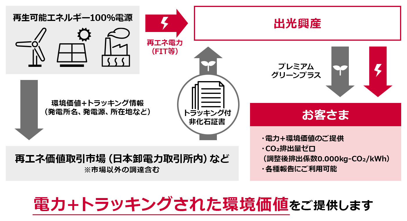 - プレミアムグリーンプラス(CO2フリー):再エネ(FIT電気含む)電源と非化石証書(再エネ指定)の組み合わせで再エネ100%電気を使用できるプラン