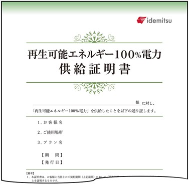 再生可能エネルギー100%電力供給証明書の発行