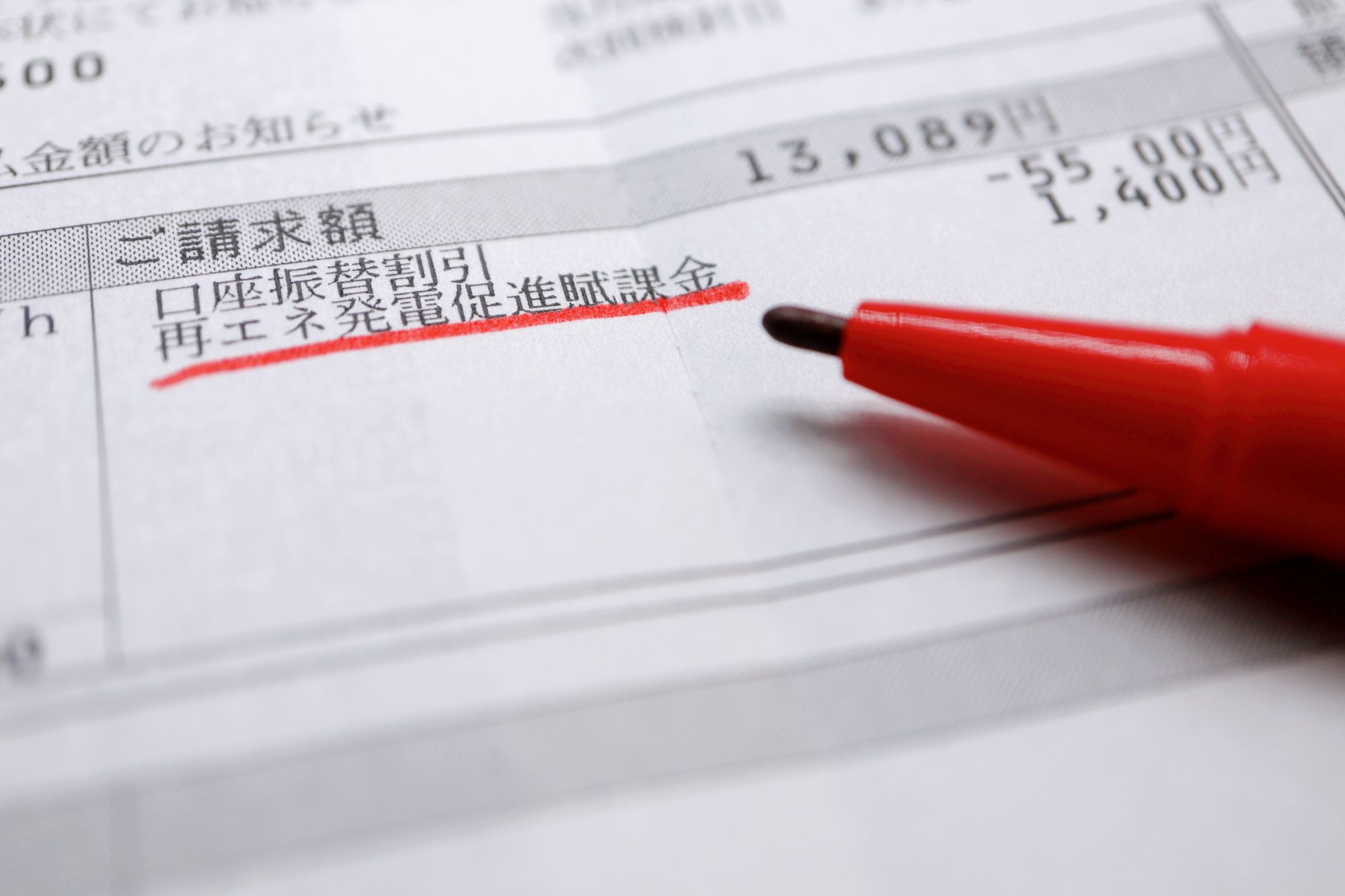 再エネ賦課金の正式名称は「再生可能エネルギー発電促進賦課金」といいます。再生可能エネルギー(太陽光・風力・水力・地熱・バイオマス)普及のために、電力利用者が使用量に応じ毎月負担する制度です。負担の対象者は、家庭・企業を問わず、国内で電気を使うすべての利用者です。「電気料金明細」や「電気ご使用量のお知らせ(検針票)」には、「再エネ賦課金」「再エネ発電賦課金」などの名称で電気料金の一部として表示されています。